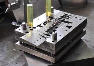 precision, short-run stamping process utilizes a unique tooling method where hardened tooling components are used in conjunction with standard holders and fixtures, thereby taking the place of conventional die sets.